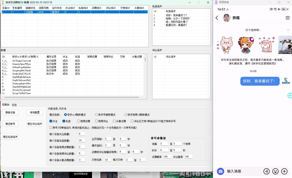 更令人惊喜的是,该系统支持一台电脑轻松控制多达50台手机。这意味着,你可以通过一台电脑,同时管理多个快手账号,实现批量操作。电脑下发指令,手机自动执行,彻底解放你的双手,让你从繁琐的手动操作中解脱出来,节省大量人工成本。