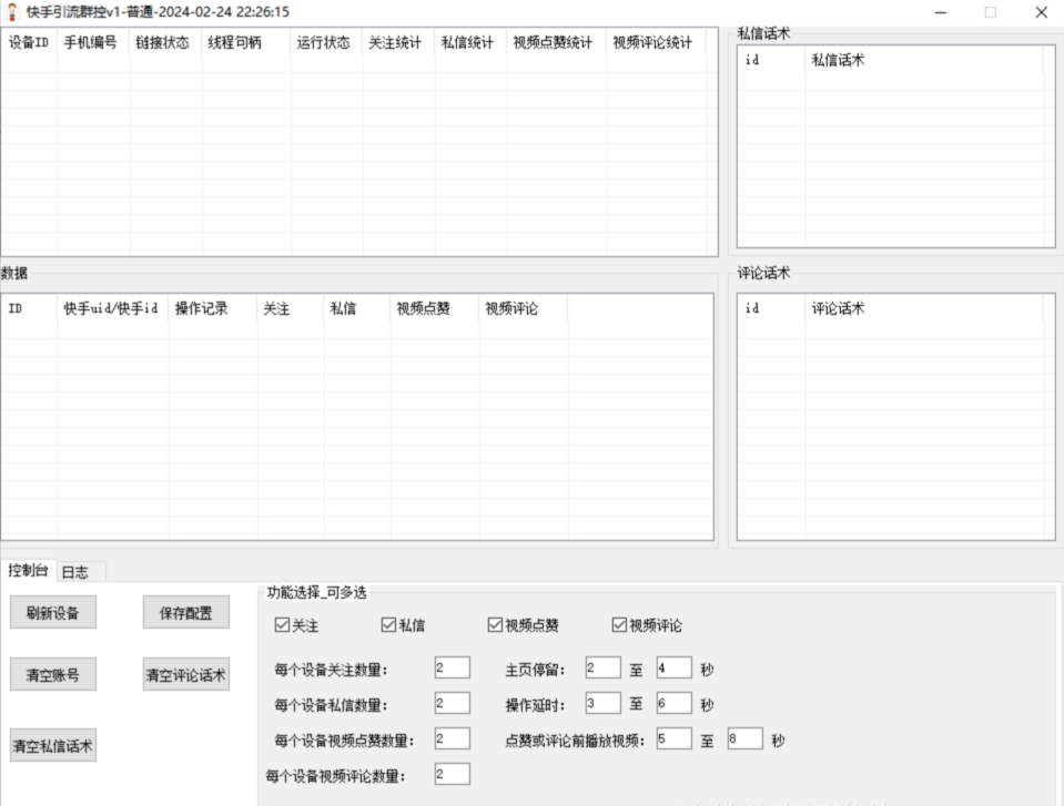 我们的快手群控留痕系统,支持全自动一键批量关注、私信、点赞、评论、收藏等操作。只需轻轻一点,即可实现多任务同步执行,大大提高你的运营效率。无论是想要扩大品牌曝光,还是提升个人影响力,都能轻松应对。