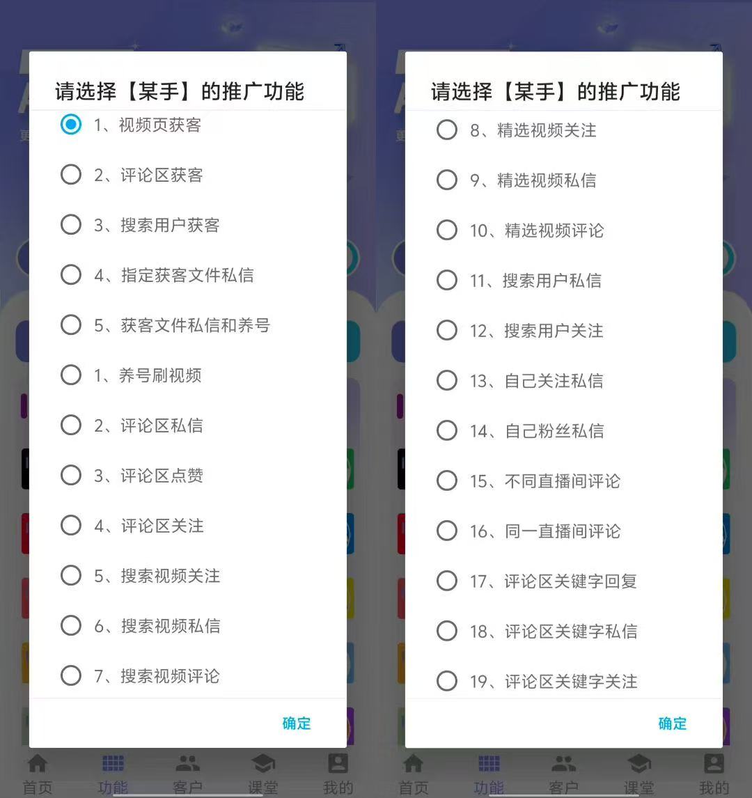 二.推广功能:自动点赞 评论 关注 回复 私信 留痕等功能;