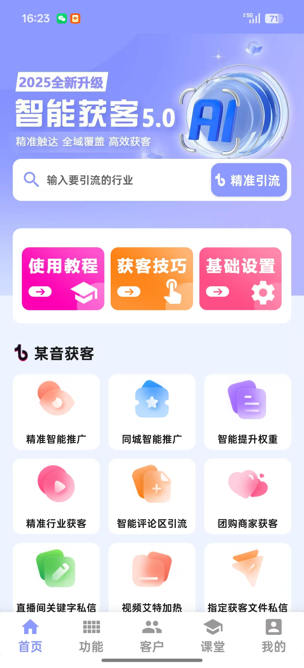 一.主页功能定制实现全自动:精准智能推广、同城智能推广、智能提升抖音账号权重、精准行业获客