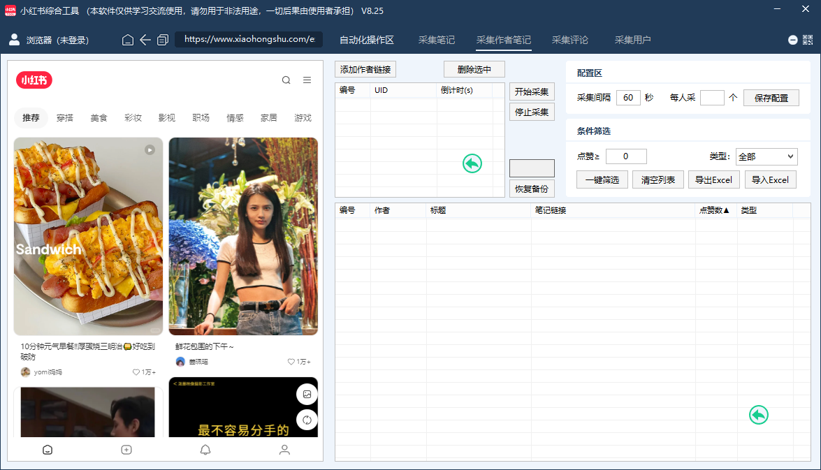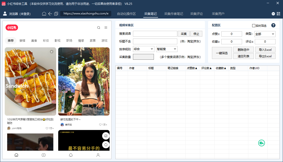 功能二:笔记采集(关键词筛选,可条件筛选,导出excel)